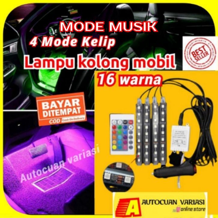 Lampu Led Kolong Mobil Lampu Mobil LED Kolong Dasboard Sensor Musik RGB + Remot Control 16 Warna DRL 4pcs