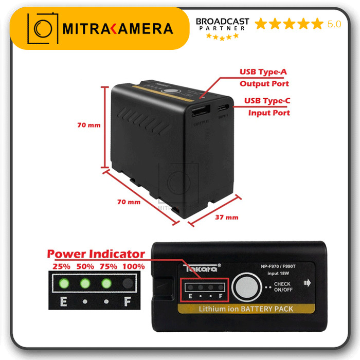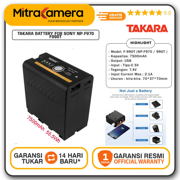 Takara Battery For Sony Np-F970 F990T F960 F770 F550 Baterai