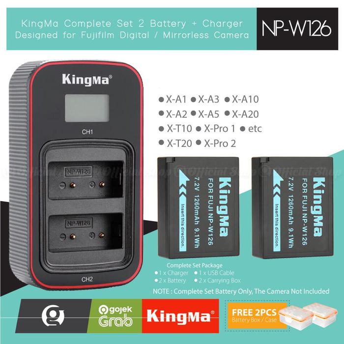 Kingma Paket Complete Battery Lcd Charger Set Np-W126 Fujifilm Xa7 Etc