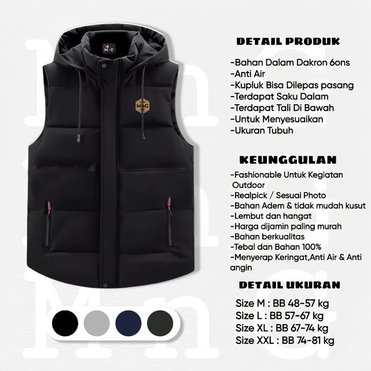 Rompi Taslan Waterproof Tebal Hoodie Pelindung Dada Original Unisex Terbaru Terlaris Pria Wanita