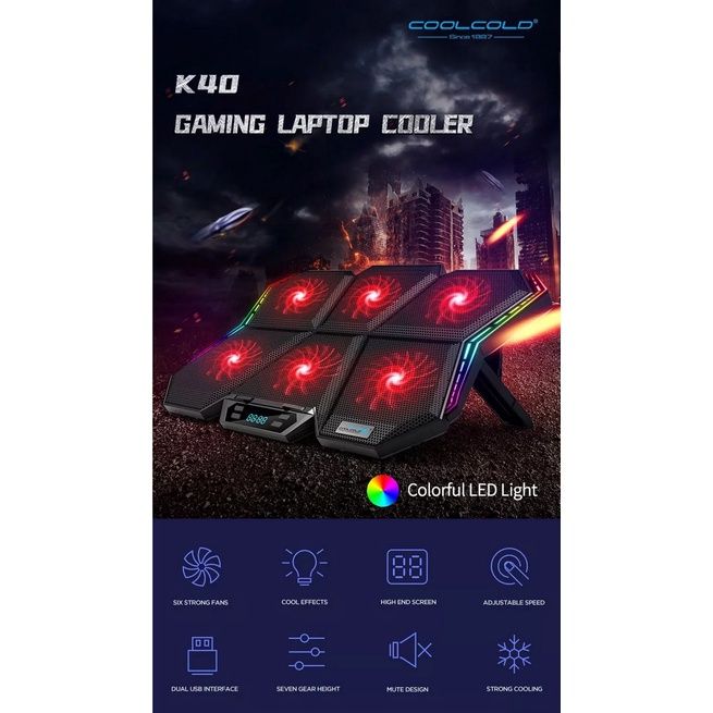 K40 COOL COLD Laptop Cooling pad 12 M0De RGB Light 6 adjustable fan