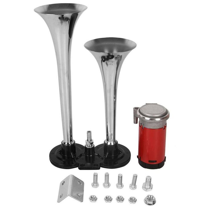 Klakson Mobil Klakson Angin Mobil Truk Bus 2 Corong Komplit Dinamo Elektrik 24 Volt