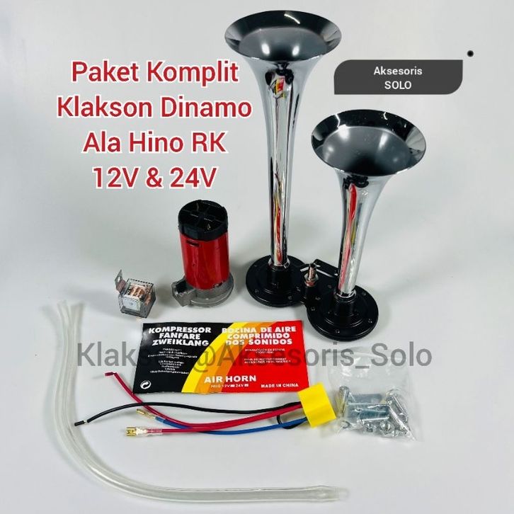 Klakson Mobil Paket Komplit Klakson Trompet 2 Corong Ala Hino RK 12V & 24V Tanpa Tabung Angin