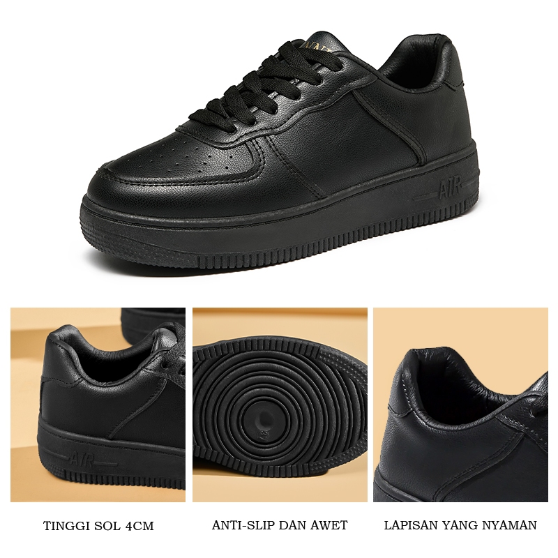 VANSICO Sepatu Sneakers Olahraga Sekolah Wanita Tali Full Black Premium Hitam Polos Cewek Kets Casual Original 100 PERSEN Sepa