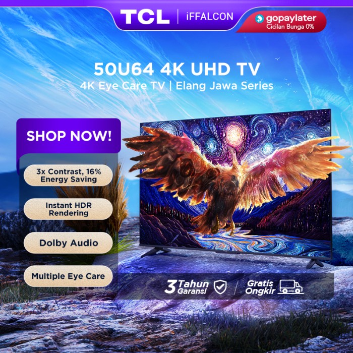 IFFALCON BY TCL - 50 INCH 4K GOOGLE TV - DOLBY AUDIO - EYE CARE - 50U64