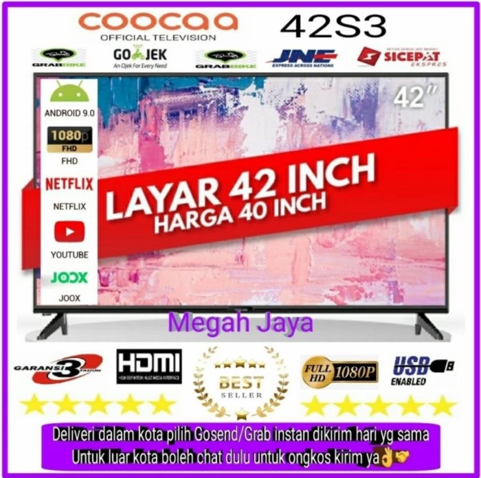 COOCAA LED TV 42 INCH 42S3G SMART ANDROID 9 NETFLIX GOOGLE MIRRORING - 42CTC6200
