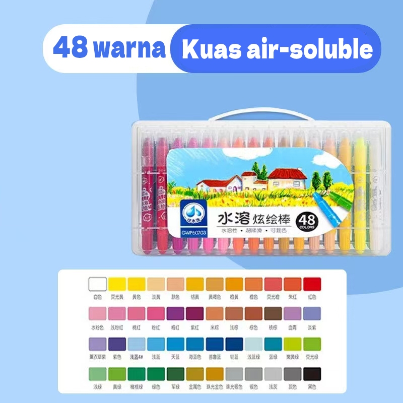 【READY】Grasp Sedang Crayon Original 12/36/48 Warna Water Soluable Crayon Krayon Mewarnai Silky Crayon