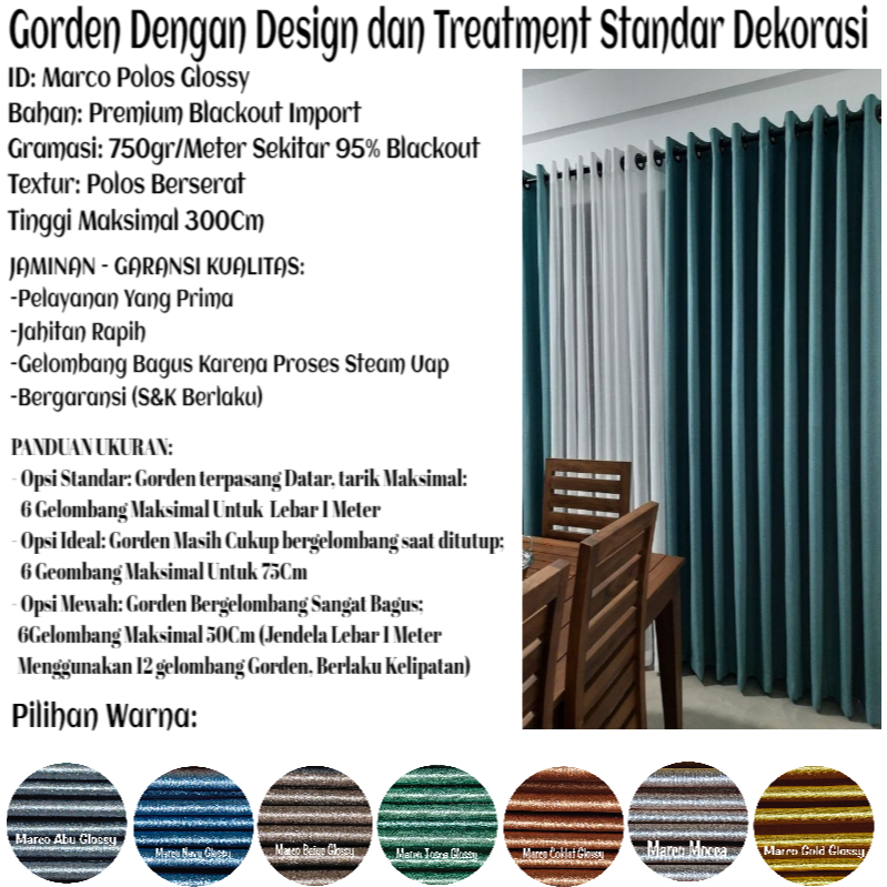 Gorden Jendela Pintu Panjang Tinggi 3 Meter Blackout Polos Premium Glossy 6 7 8 9 10 12 15 Gelombang