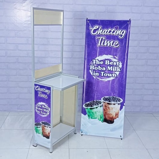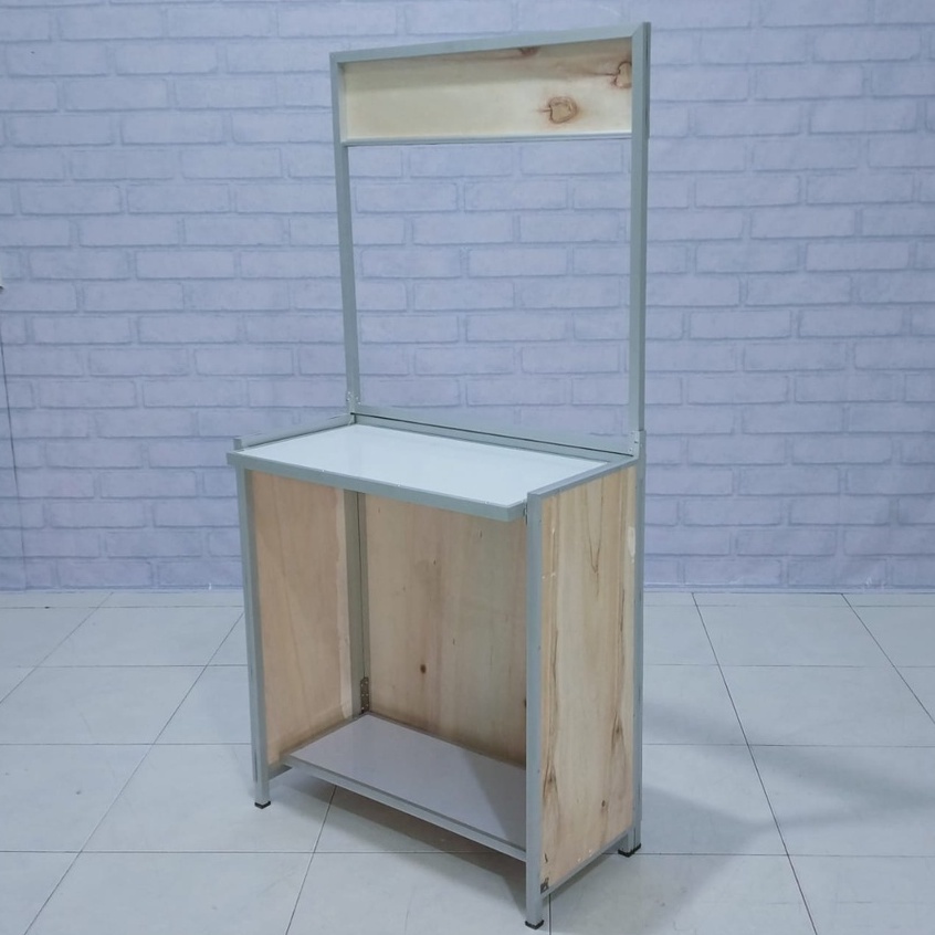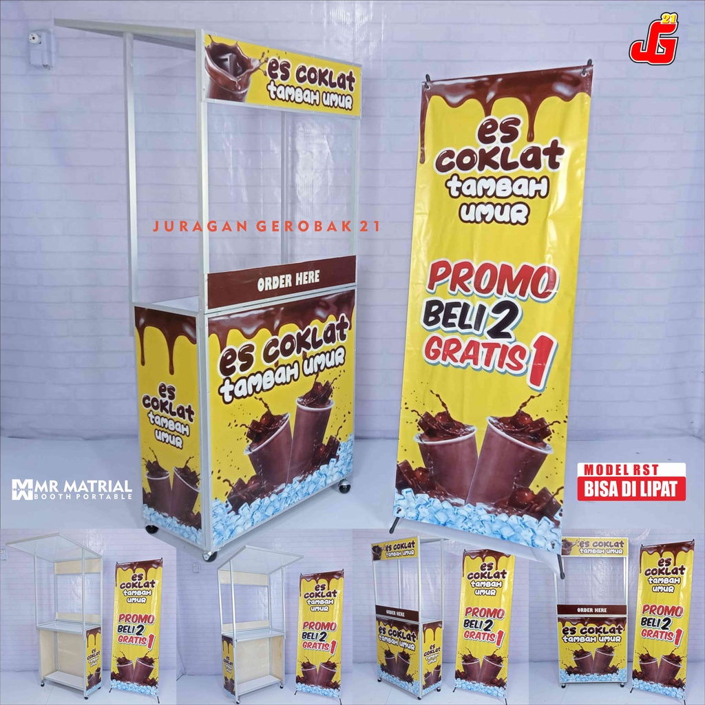 Booth Portable Dengan Atap Gerobak Jualan Makanan Minuman RST Gerobak Lipat Full Rangka Siku Free Sekat Depan