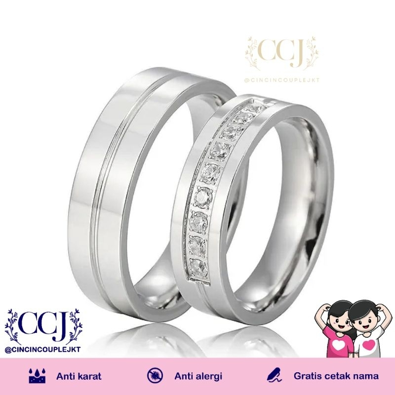 [GRATIS CETAK NAMA] Cin cin Couple Titanium Anti Karat R65 | Cin cin Pasangan | Cin cin Hadiah | Cin cin Lamaran