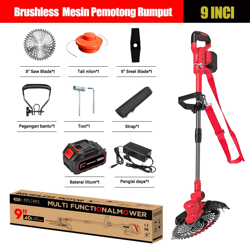 588V Mesin Potong Rumput 9 Inci Cordless Mesin Pemotong Rumput High Power Alat Pemotong Rumput