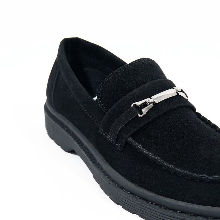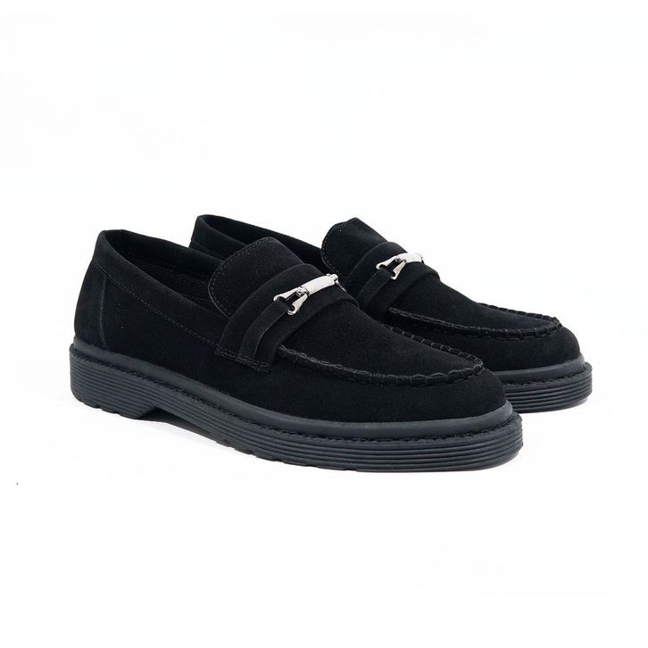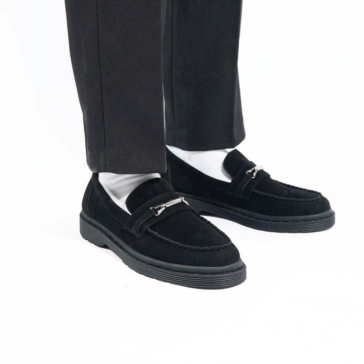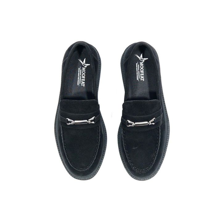 Moofeat Zora - Sepatu Penny Loafers Suede Kulit Casual Pria Wanita Black