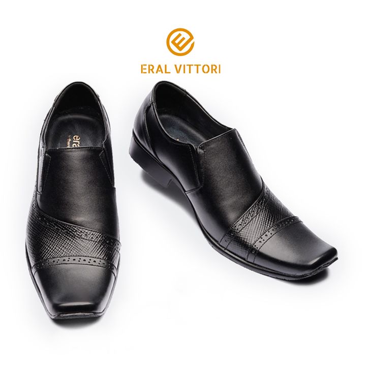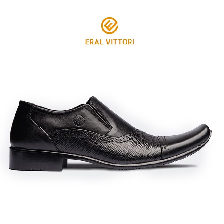 Eral Vittori - Erstep 7095 Sepatu Pantofel Kulit Pria Kantor Formal Casual Slip On Hitam
