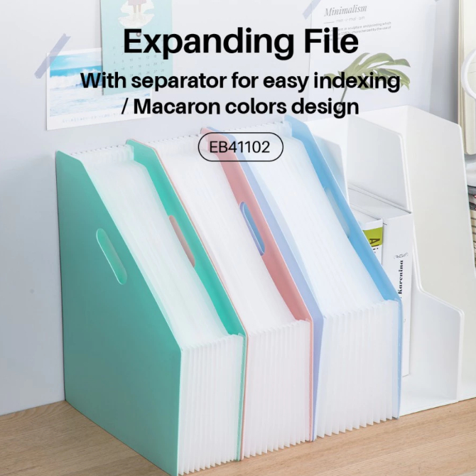 Deli Map Dokumen Expanding File A4 Macaron EB41102 | Warna Biru, Tosca, Pink, Plastik PP