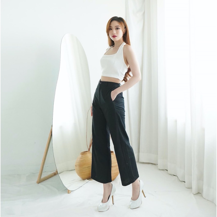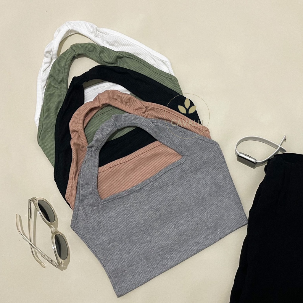 CAVALU Korean Knit Halter Tank Top Crop Top Rajut Polos 151