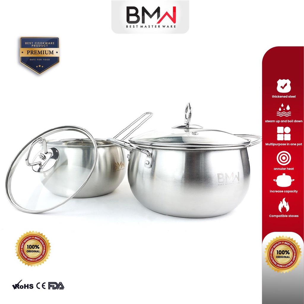 PROMO BMW Kitchenware - Panci Set Stainless Steel Panci Rebus Kualitas Premium Ukuran 16cm dan 18cm