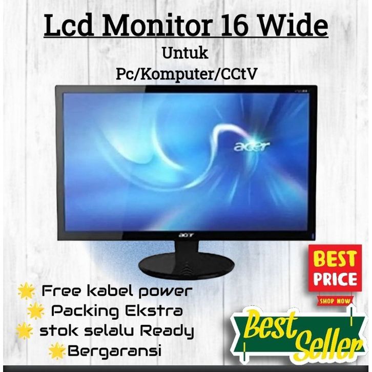 TANPA DP Led Lcd monitor PC / komputer/ cctv 16inc wide jernih mulus TERLARIS