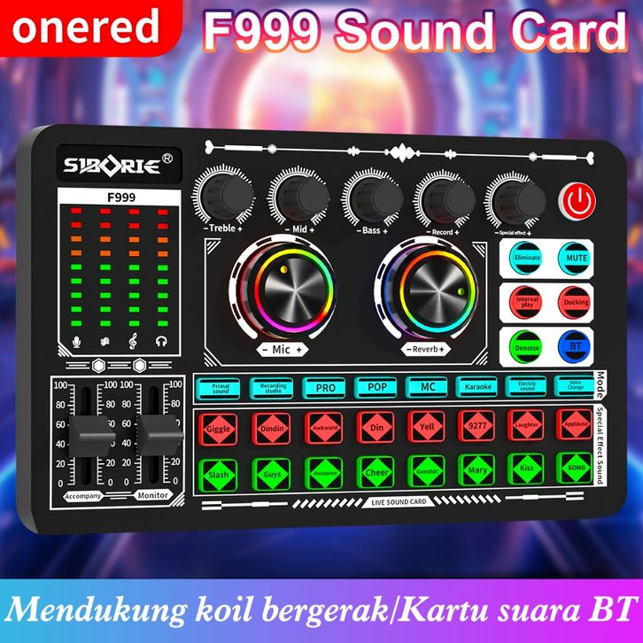 Onered【Free Headset】F999 soundcard +BM800pro+E11 headset Paket Lengkap SET Sound Card 1 mic stand