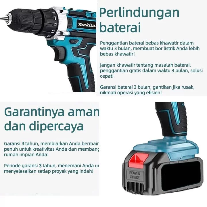 Mesin bor 2 baterai MAKlTA 766V cas 10mm bor listrik Tangan Cordless murah bor tangan baterai besi tembok Beton kayu