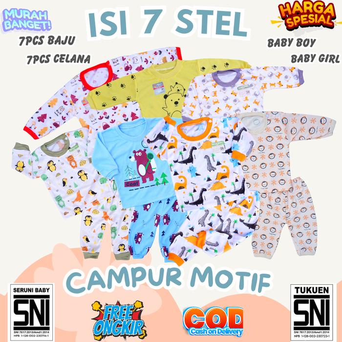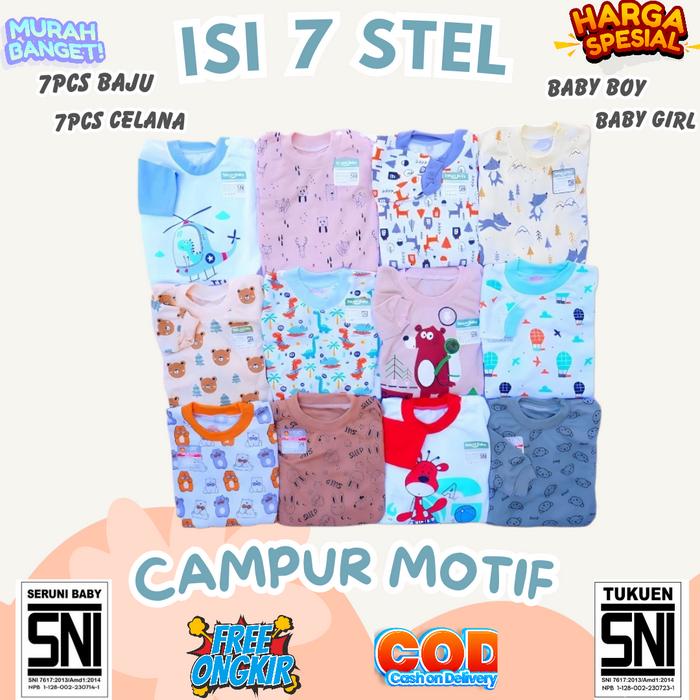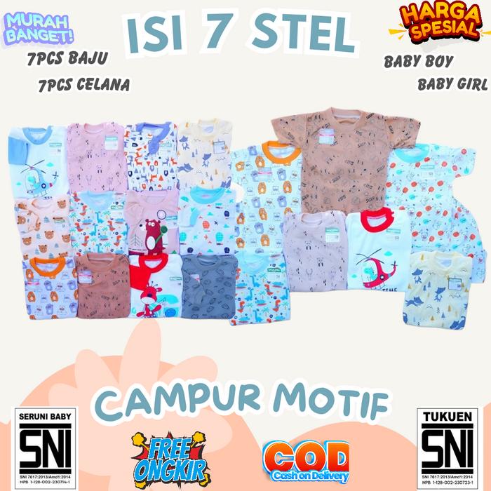 PAKET SETELAN (ISI 6-7 PCS) BAJU BAYI 0-12 BULAN MIX MOTIF CEWE DAN COWO FREE KACAMATA BUNDA PARSEL - 3 PANJANG 3 PENDEK, CEWE