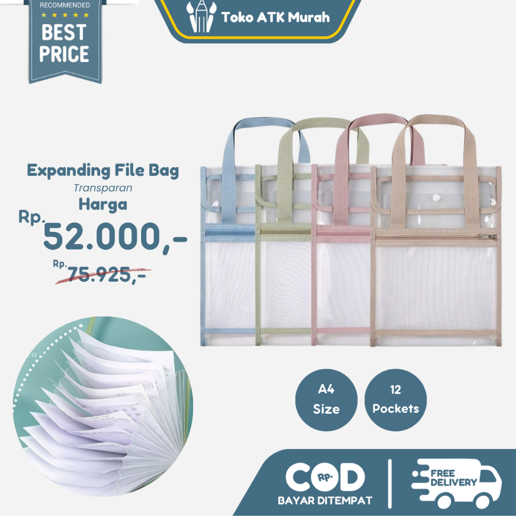 Map Dokumen Expanding File School Bag 12 Pocket Tas Jinjing Transparan