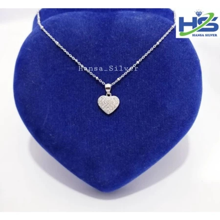 KalunGg Perak Wanita Silver Asli 925 Lapis Ems Putih Rantai Jedar Lontin Love - Perhiasa Perak Asli