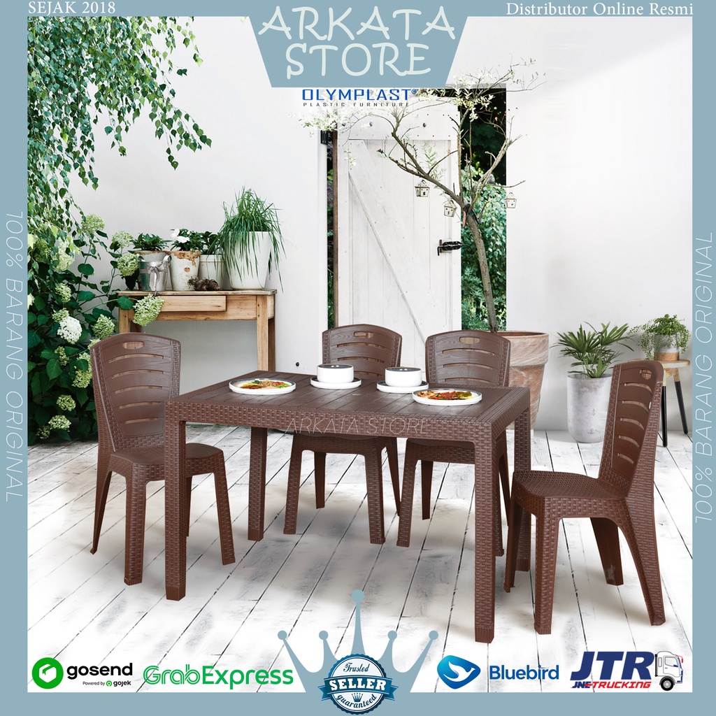 1 Set meja Makan Plastik 120 ODT-R + 4 Kursi Olymplast Rotan OL 203 208