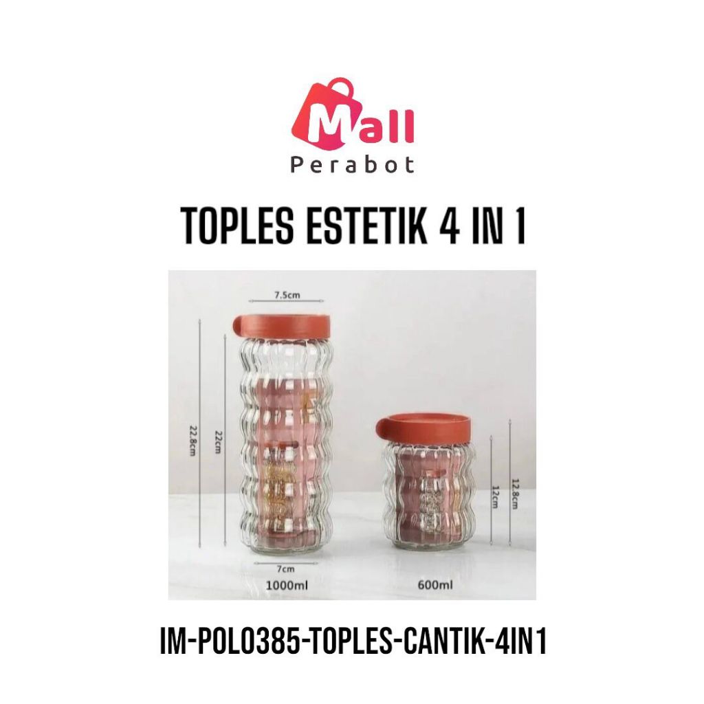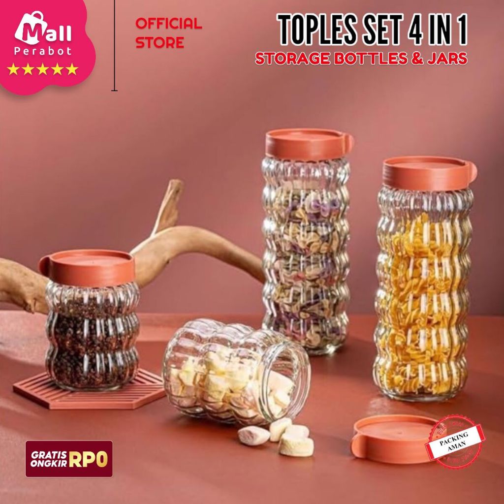 Mall Perabot | Toples Estetik Cantik 4 In 1 | Tempat Penyimpanan Kue Kaca Transparan | Toples Ulir Set