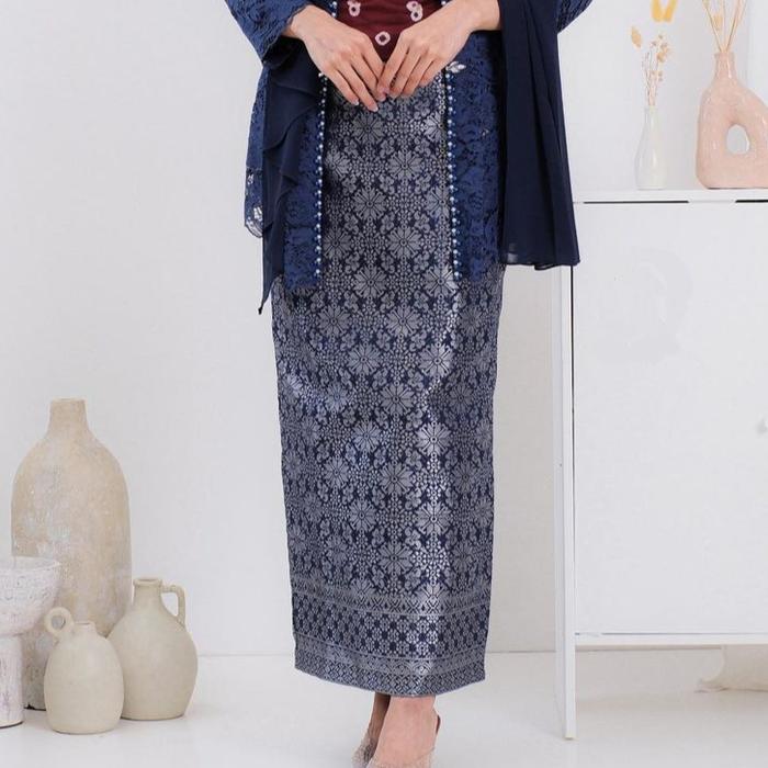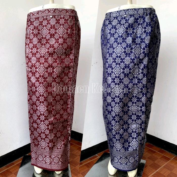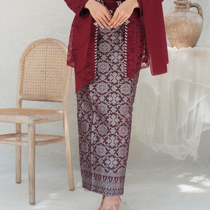 Rok Songket Span / Rok Songket Kebaya / Rok Songket Instant Jadi / Rok Wanita - Maroon Silver S