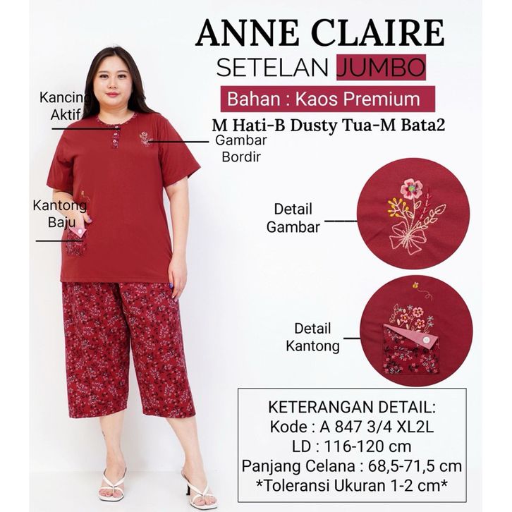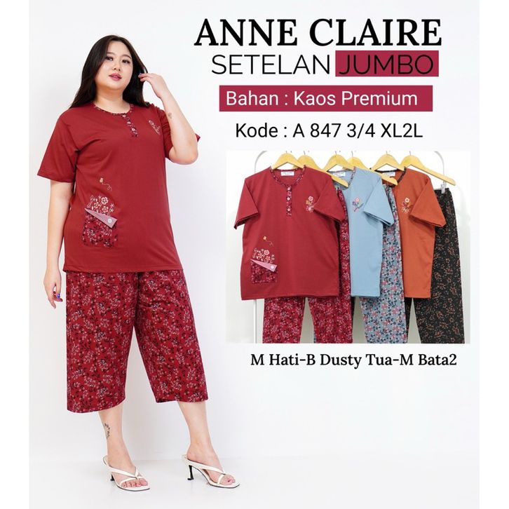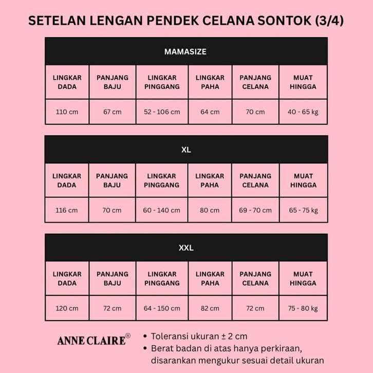 NEW Arrival Baju Tidur Jumbo 2L | Baju Tidur Wanita | Babydoll Wanita | Babydoll Celana 3/4 | 3/4 2L ANNE CLAIRE