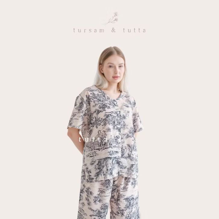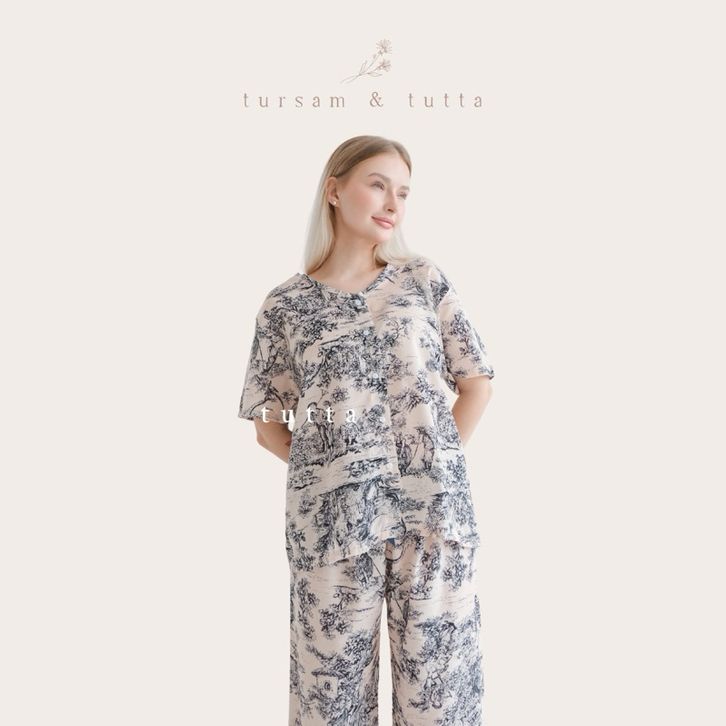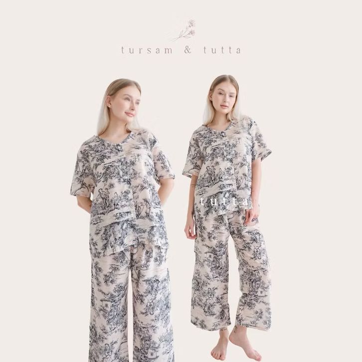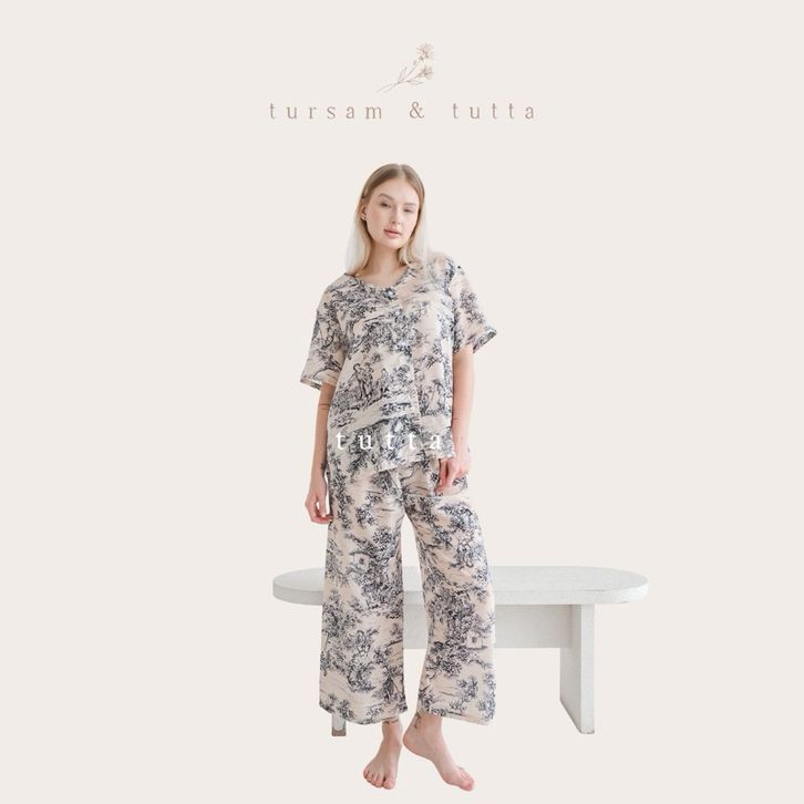 TERBARU Tursam Tutta - Piyama kancing ibu menyusui Busui fit to JUMBO lengan pendek Baju tidur wanita Satu Set
