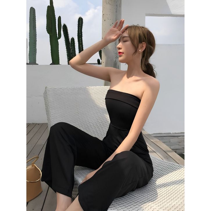 PREMIUM Planet Fantasi Women Jumpsuit Tanpa Lengan Tube Off Shoulder Wide Leg Polos (S/M/L/XL) 1135 Overall Basic