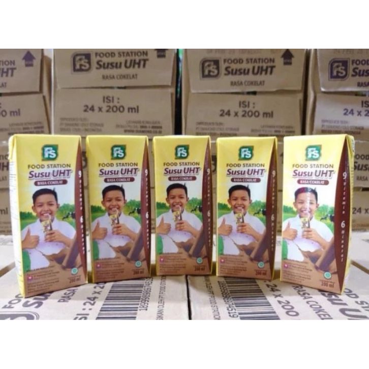 Susu UHT Food Station Rasa Coklat dan FullCream 1 dus isi 24 Pcs terlaris, termurah, dan