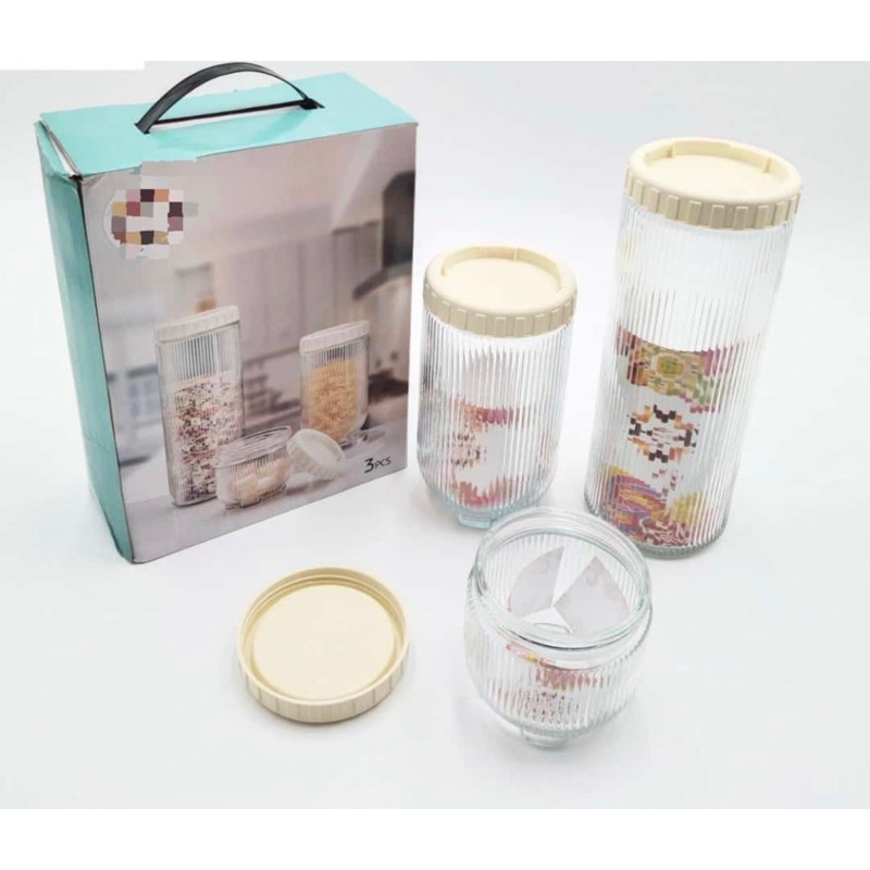 Toples Kaca Gladies Set 3 Pcs / Toples Tempat Penyimpanan Kue Kering Lebaran