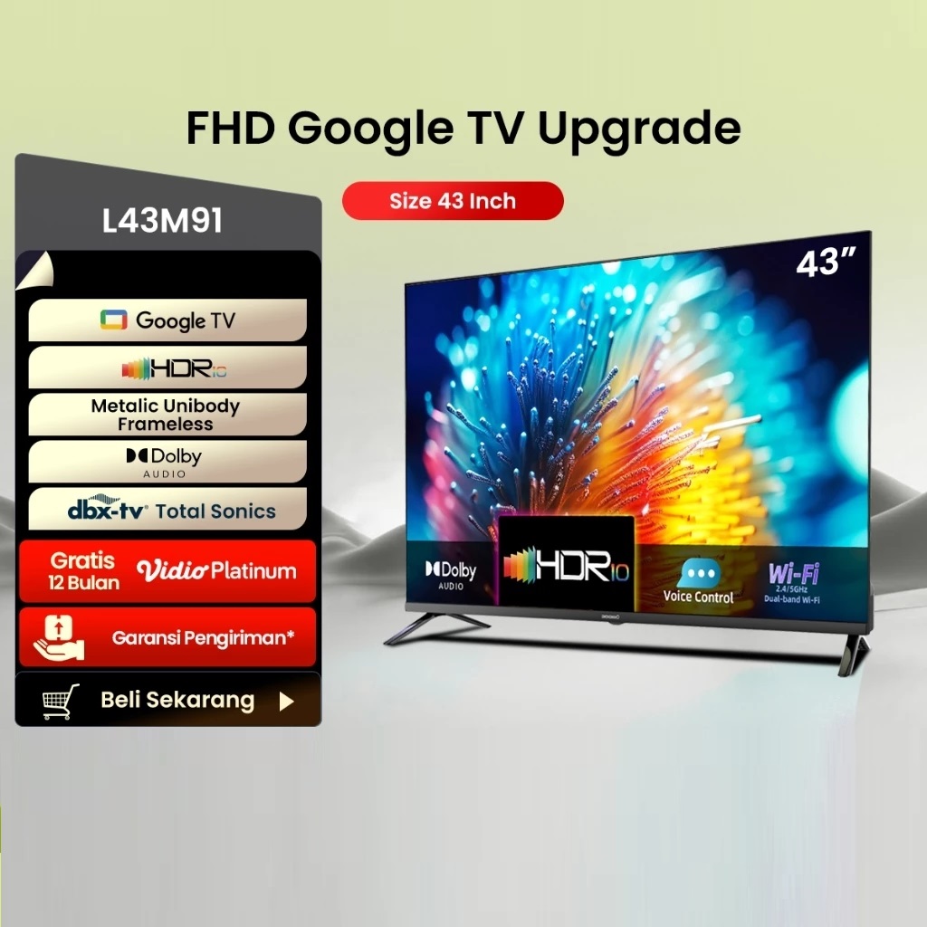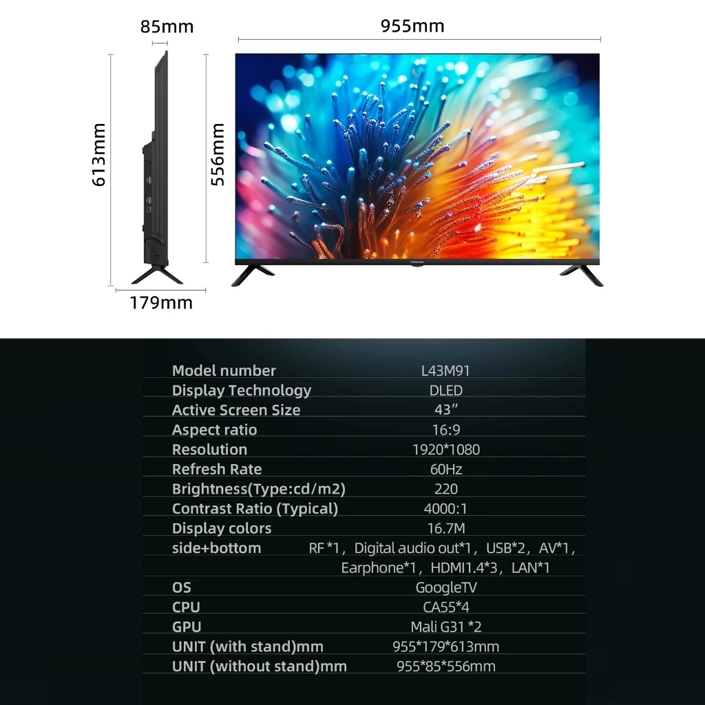 CHANGHONG GOOGLE TV 43 INCH FHD DOLBY AUDIO GOOGLE PLAY NETFLIX YOUTUBE BLUETOOTH USB GOOGLE ASSISTANT SMART TV DIGITAL