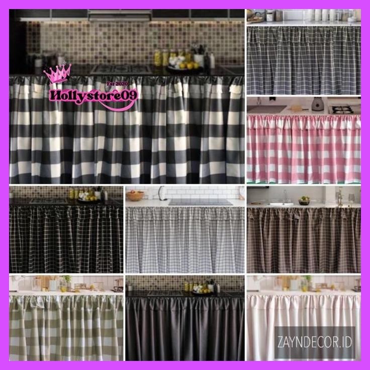 Beli 2 Murah Gorden Kolong Dapur Tinggi 50,60,70,75,80,85 Minimalis Modern Aesthetic Motif Korean Kotak Premium T60 T70