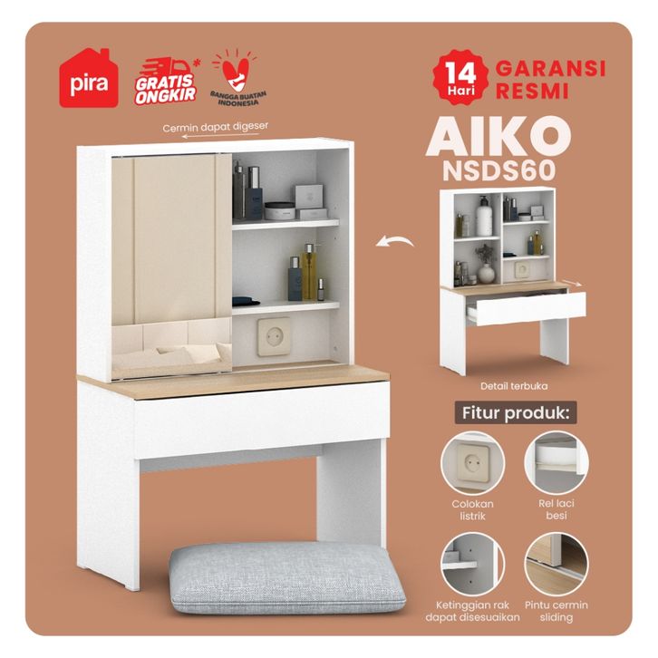 MEJA RIAS MINIMALIS AIKO NSDS60 Meja Rias Lesehan dengan Colokan Listrik MEJA RIAS MAKEUP BEST SELLER