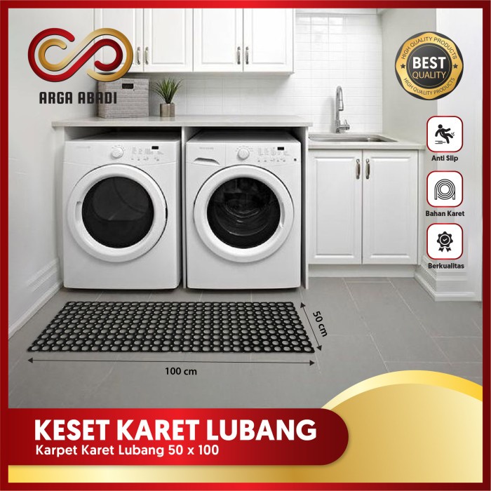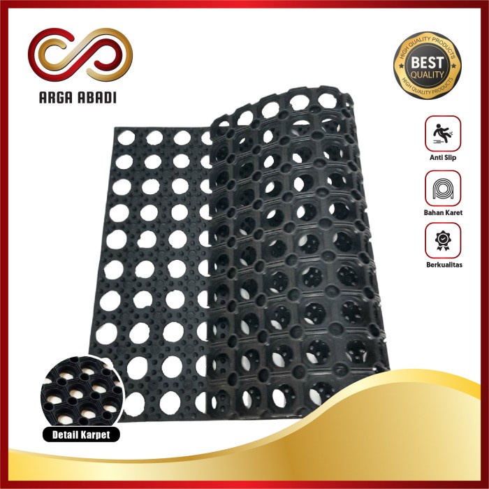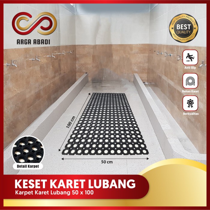 Karpet Karet Lubang Kompos Hitam untuk Lantai Licin/Kamar Mandi 50x100