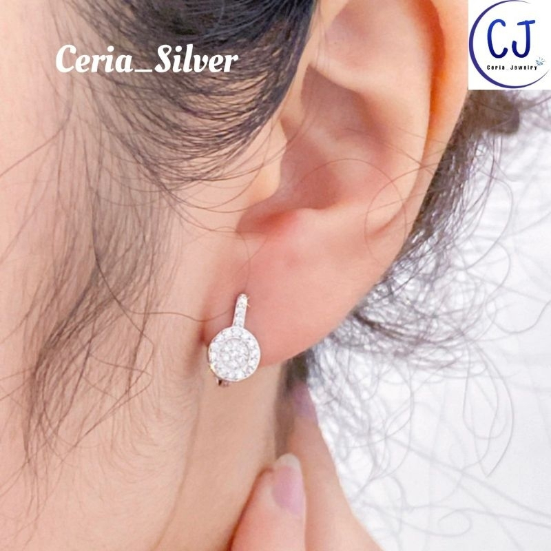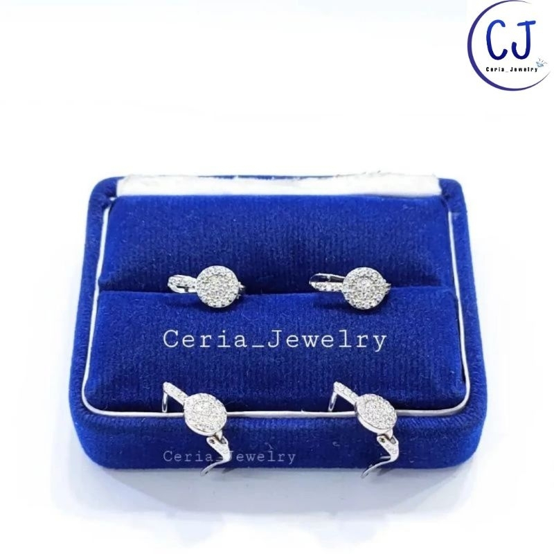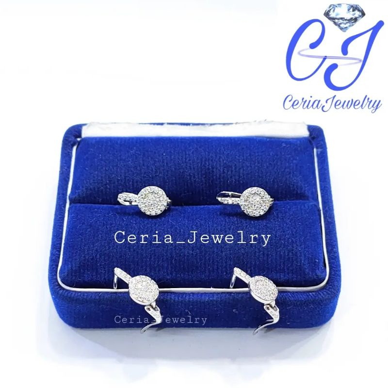 Antingg Perak Asli Silver 925 Lapis Ems Putih Model Jepit Permata Bulat - Antingg Wanita Anti Karat