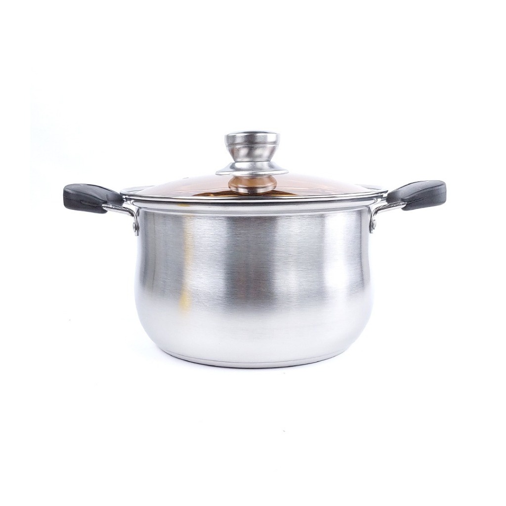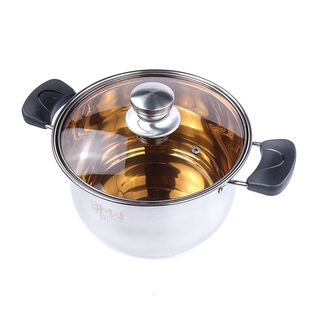 BMW Kitchen Ware - Panci Sup Stainless Tebal Tutup Kaca Panci Mie Rebus Milk Pot Soup Pot Ukuran 24CM / 22CM / 20CM