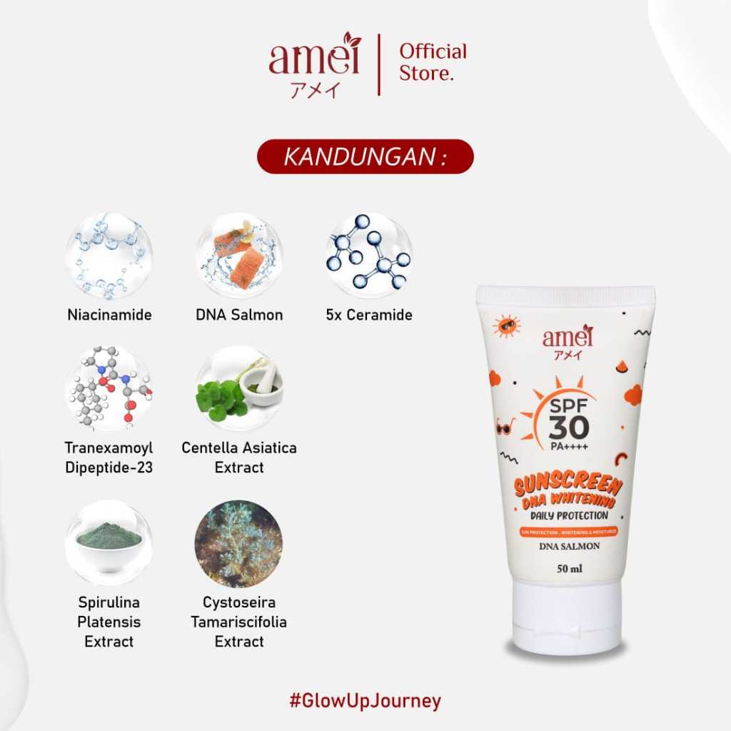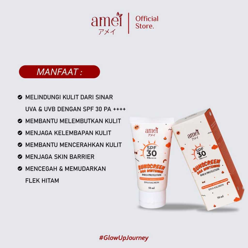 Amei Sunscreen SPF 30 PA++++ 50 Ml 2-in-One Melindungi Kulit Dari Sinar UV - Mencegah Flek Hitam - Mencerahkan Warna Kul