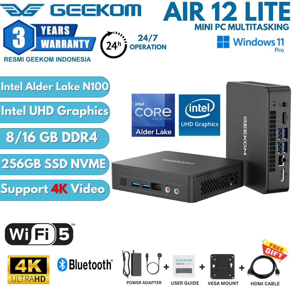 GEEKOM MINI PC MINI AIR 12 LITE INTEL N100 GEN 12 RAM 16GB DDR4 256SSD WINDOWS 11 PRO WIFI