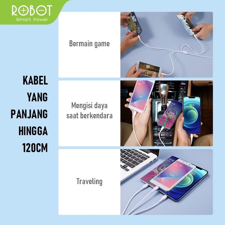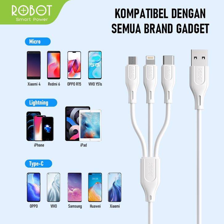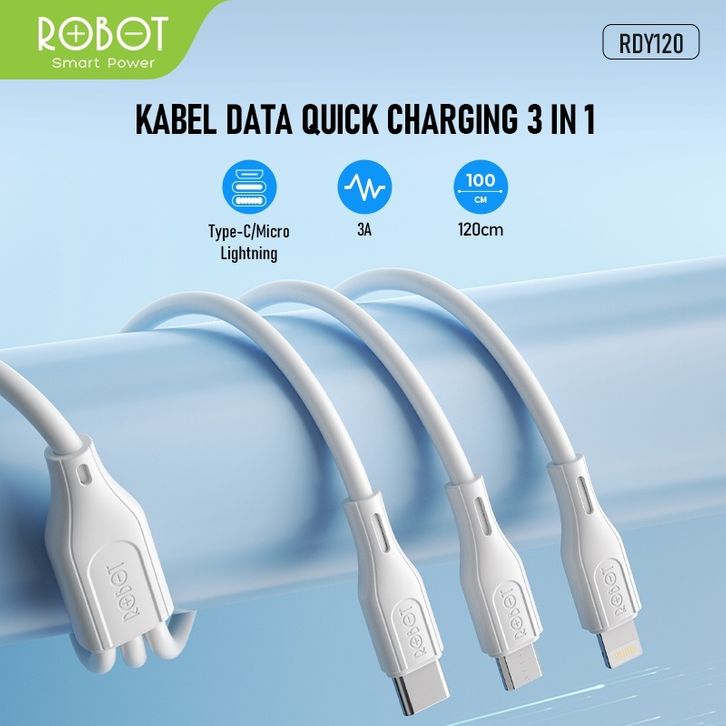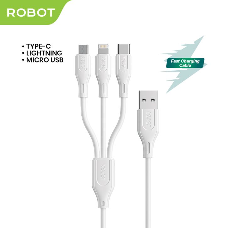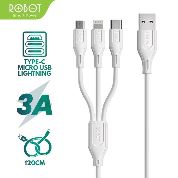 ROBOT Kabel Data Quick Charging 3 In 1 Type-C / Micro Lightning Panjang 120cm Data Cable Original Kuat Tahan Lama