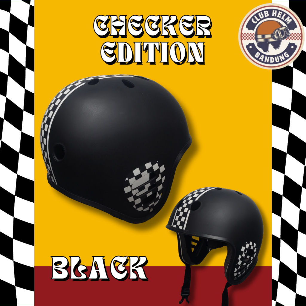 HELM SKATE FULL GENIO BMX / SEPEDA / SKATE BOARD MOTIF CHECKER BOARD ARMY PRIA WANITA