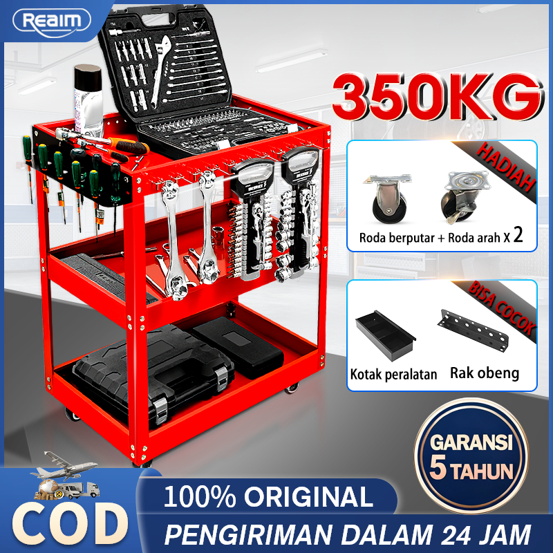 Reaim Bengkel Rak 3 Susun Perkakas Trolly Trolley Kotak Peralatan Troli Dengan Peralatan Penyimpanan