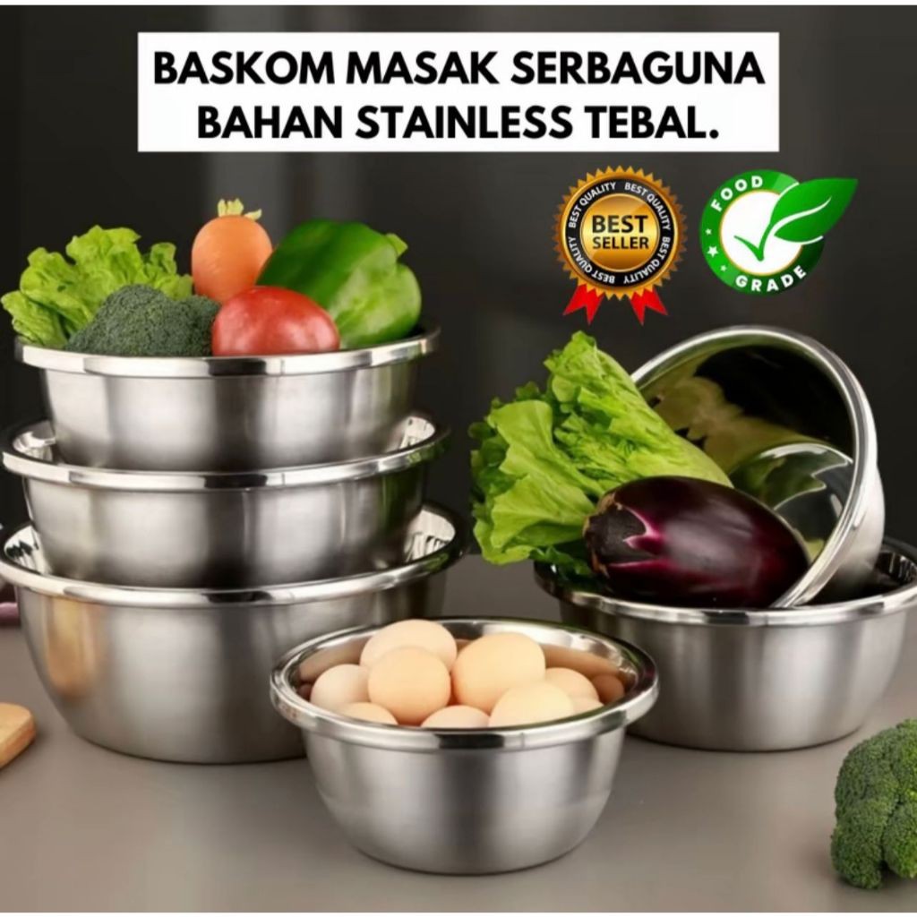 BMW Kitchenware - Baskom Masak Serbaguna Bahan Stainless Steel Tebal 1 SET isi 5 Pcs Mixing Bowl Baskom Cuci Buah Sayur