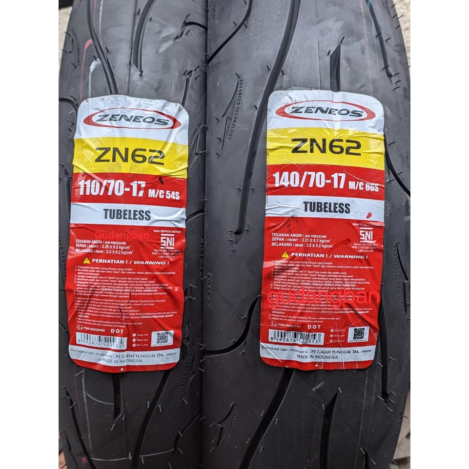 110 70 17 & 140 70 17 Sepasang ban Zeneos ZN62 - Ban luar motor Ninja Moge Tubeless Free Pentil
