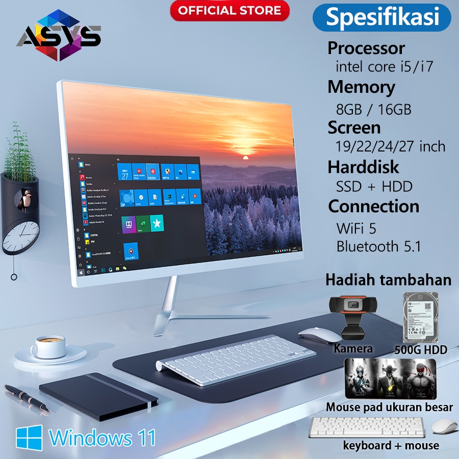 Komputer All-in-One Full Set Baru Prosesor Core i5/i7 Solusi Terbaik untuk Kantor, Desain, & Gaming