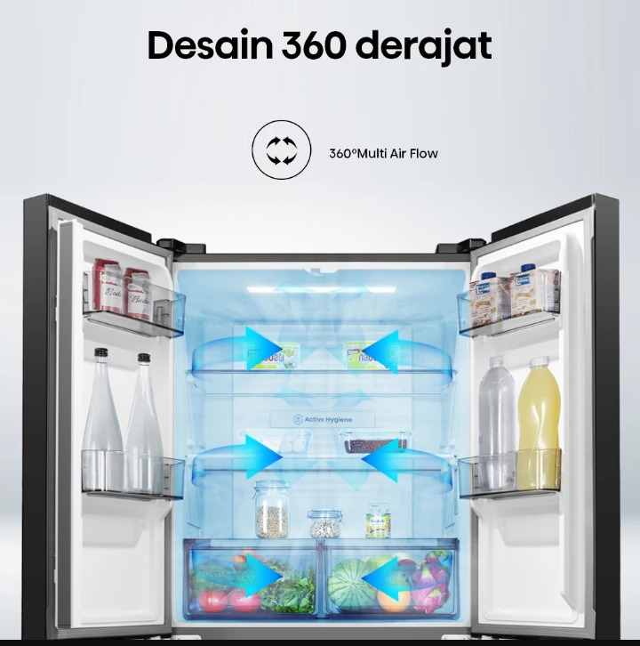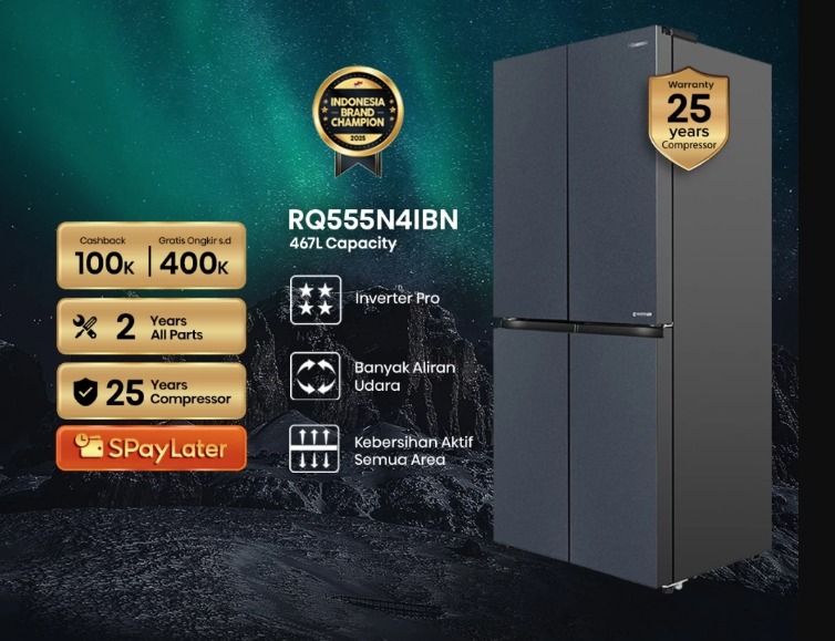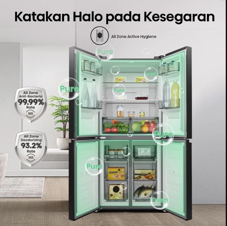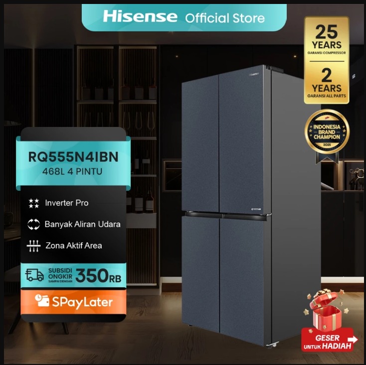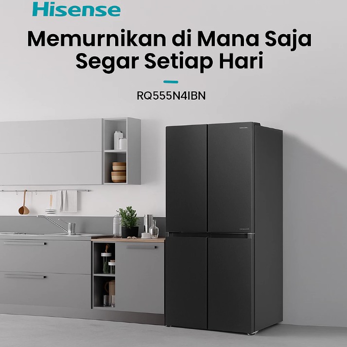 Hisense Kulkas RQ555N4IBN Refrigerator 4 Pintu Kapasitas 468L Warna Hitam Inverter Pro 360 Derajat Multi Air Flow All
