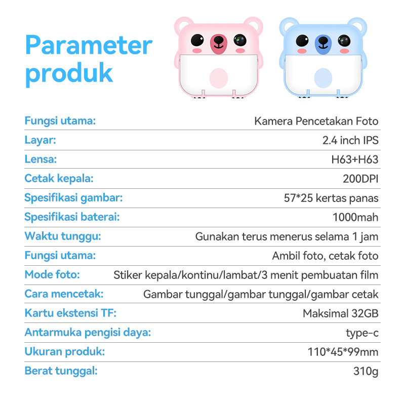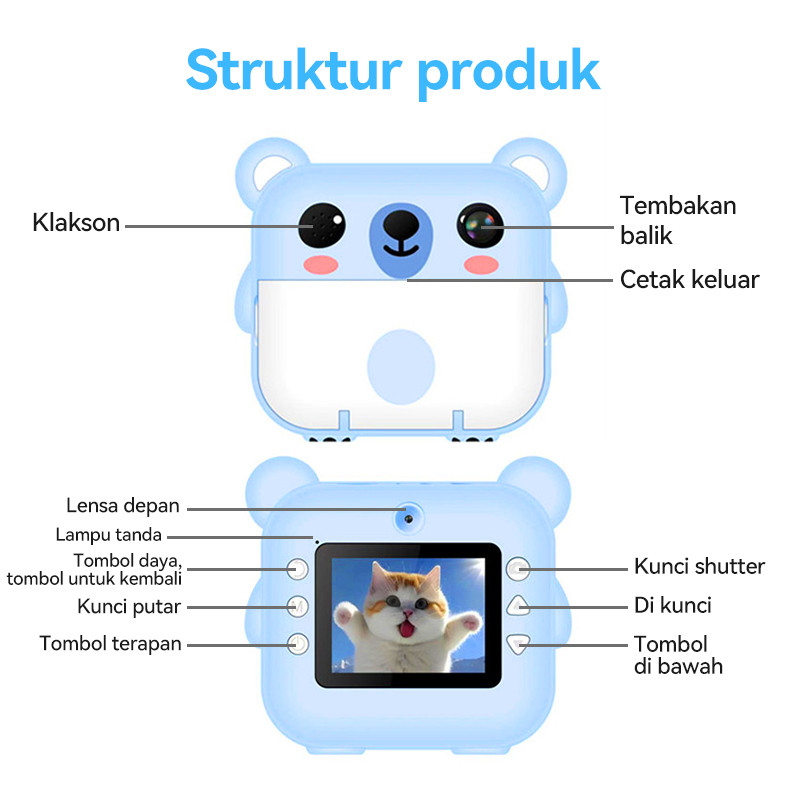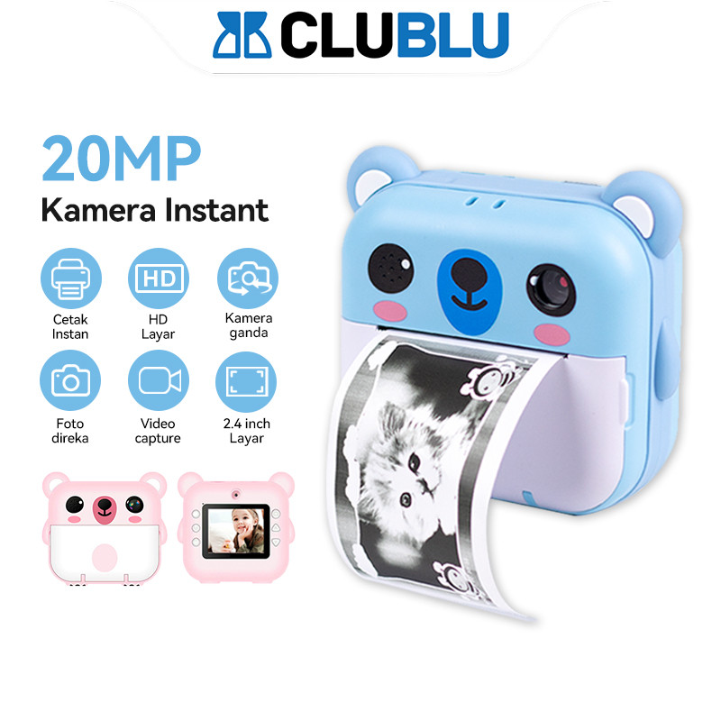 CLUBLU Kamera INSTANT Pocket Anak Mini Digital Bisa Keluar Foto Pencetak Pixel 20MP Printer Termal
